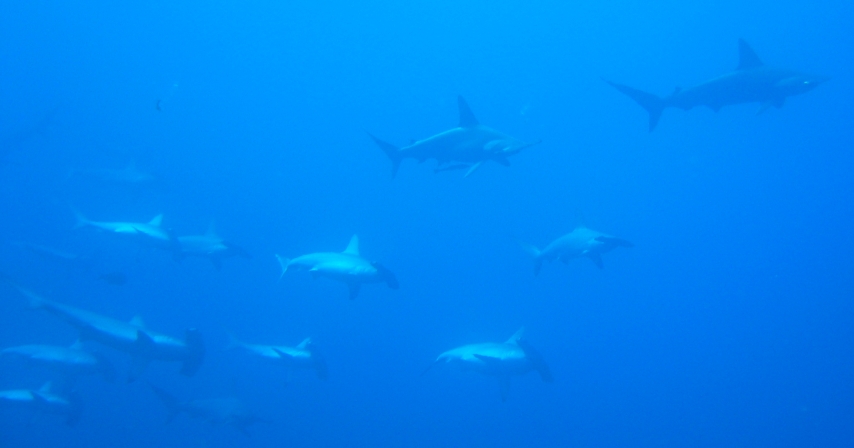Daedalus - 60 Seemeilen auf dem offenen Meer, kein anderes Boot, gute Sichtweiten und mehrmals Schulen mit 40 - 50 Hammerhaien ganz aus der Nähe. Graue, Weißspitzenriff- und sogar ein Weißspitzenhochseehai (Longimanus) waren auch dabei - einfach Spitze.